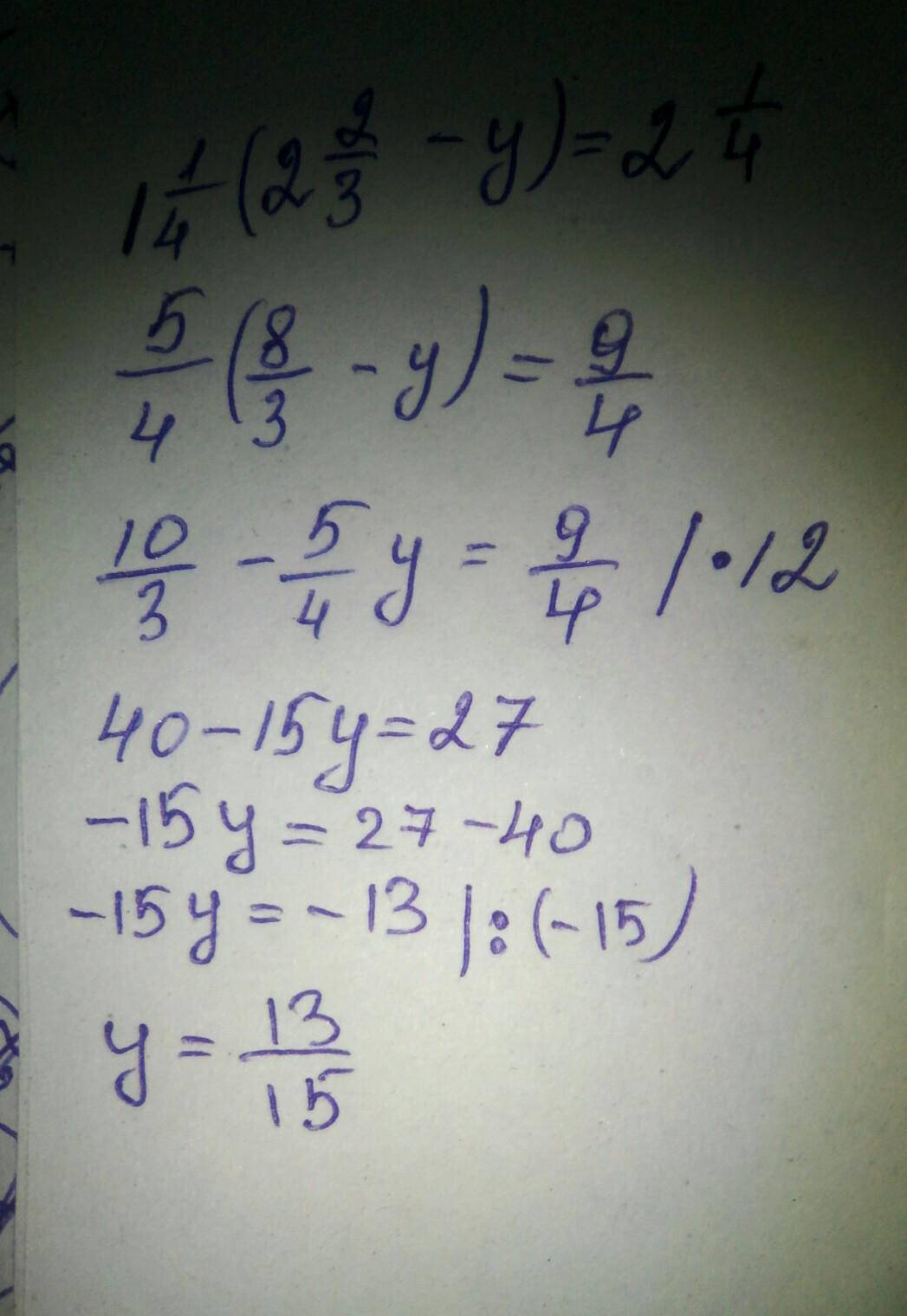 1 1/4×(2 2/3-y)=2 1/4
