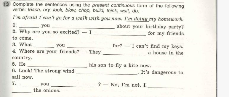 complete the sentences using present continuous form of the following verbs: помогите!