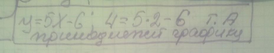 Чи проходить графік функції y=5x-6 через точку A(2;4)?