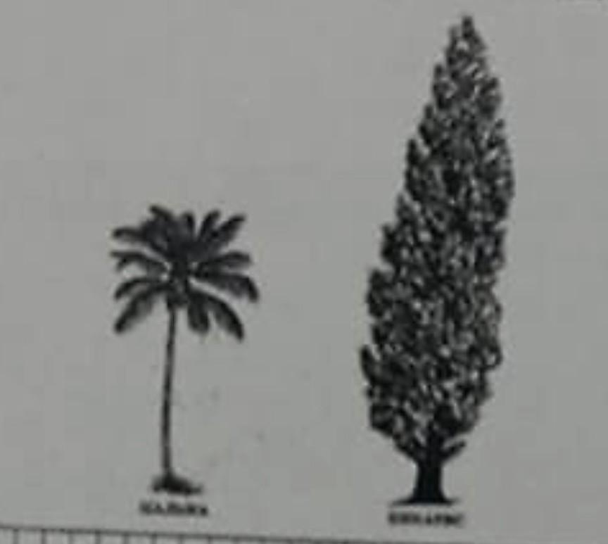 на рисунке изображена пальма и кипарис высота пальмы 7 м. Кокова примерная высота кипариса?