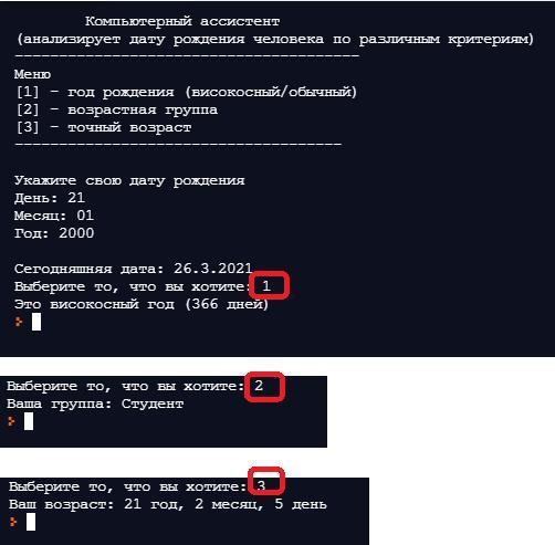компьютерный ассистент (анализирует дату человека по различным критериям)