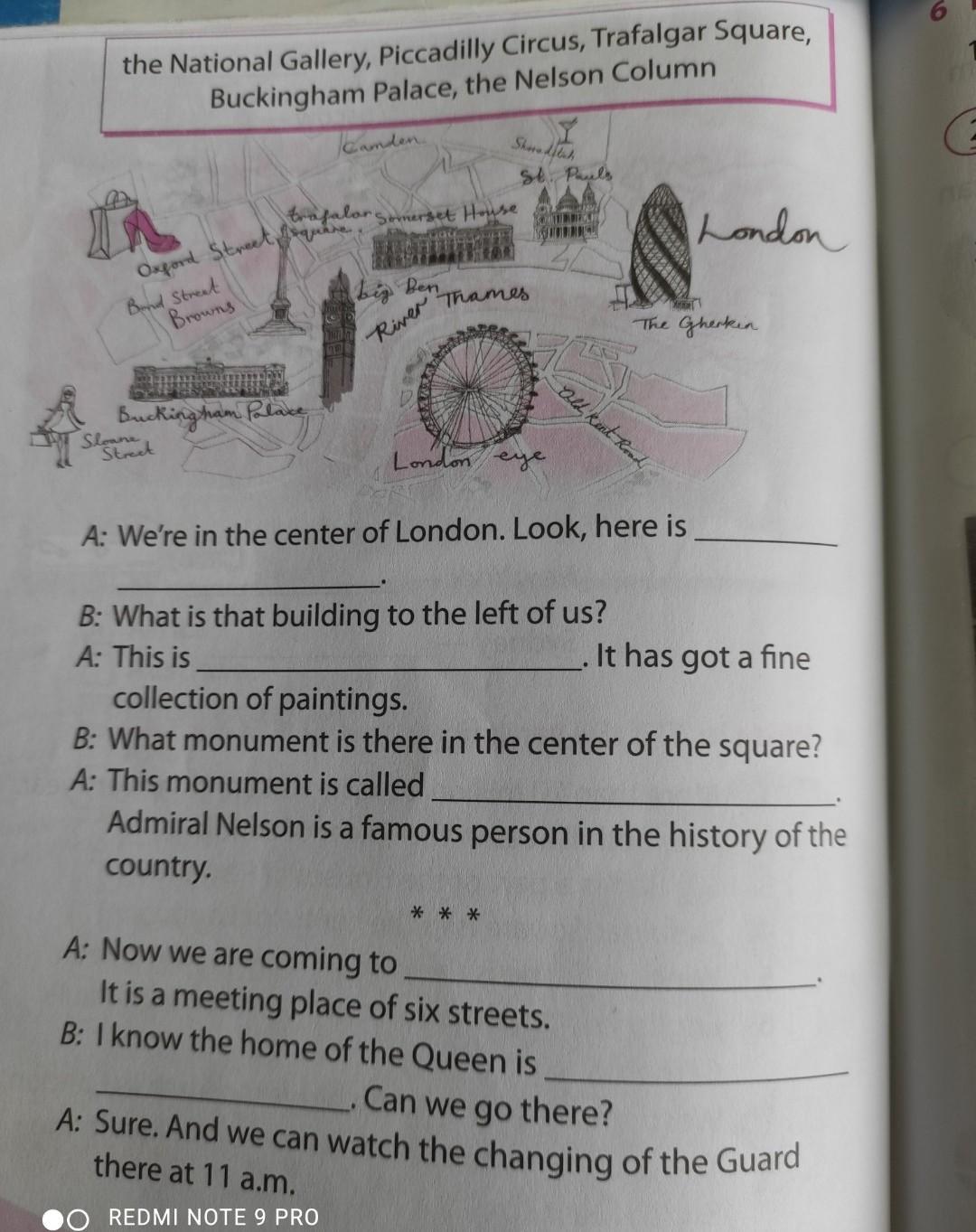 Picadilly Circus, the National Gallery, the Nelson Column, Trafalgar Square, Buckingham Palace