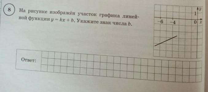 на рисунке изображён участок графика линейной функции y=kx+b. Укажите знак числа b