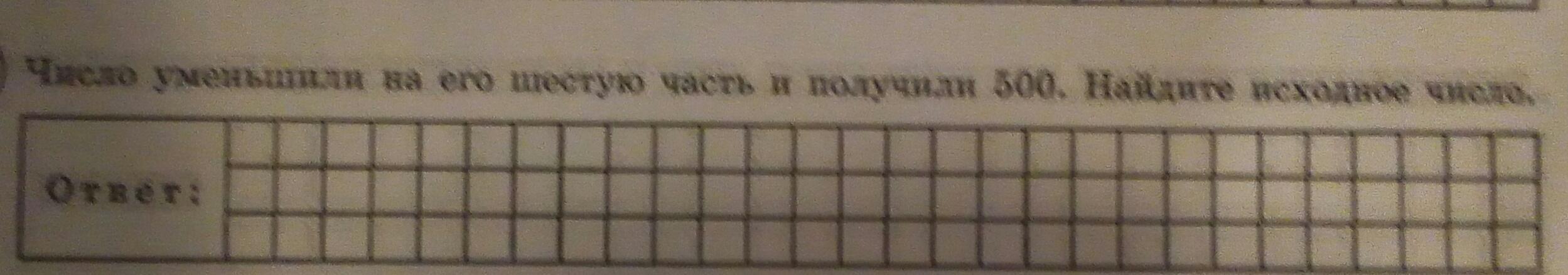 Помогите, пожалуйста. Число уменьшили на его шестую часть и получили 500. Найдите исходное число. Можно еще с обьяснением что-бы понять как решить это, но только другое.