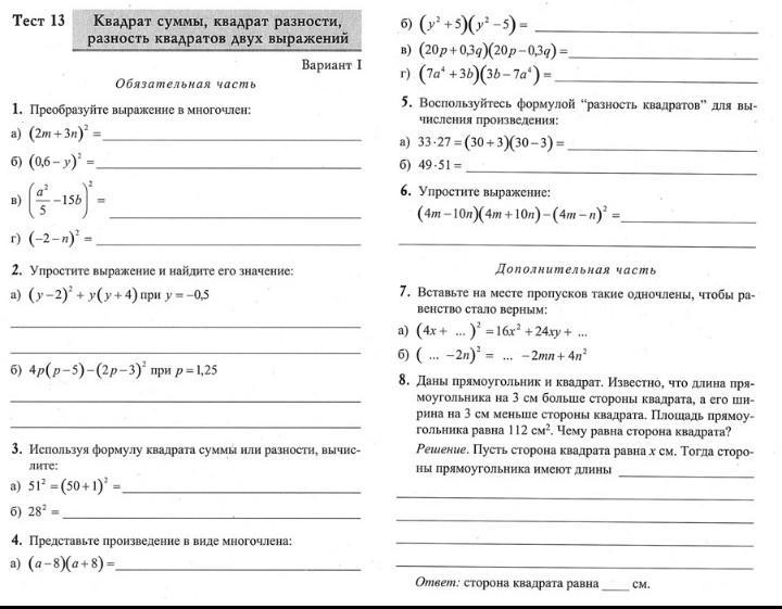7) a) .(4x+3y) 2= 16x2+24xy+9y2 b)(m- 2n) 2= m2-2mn+4n2