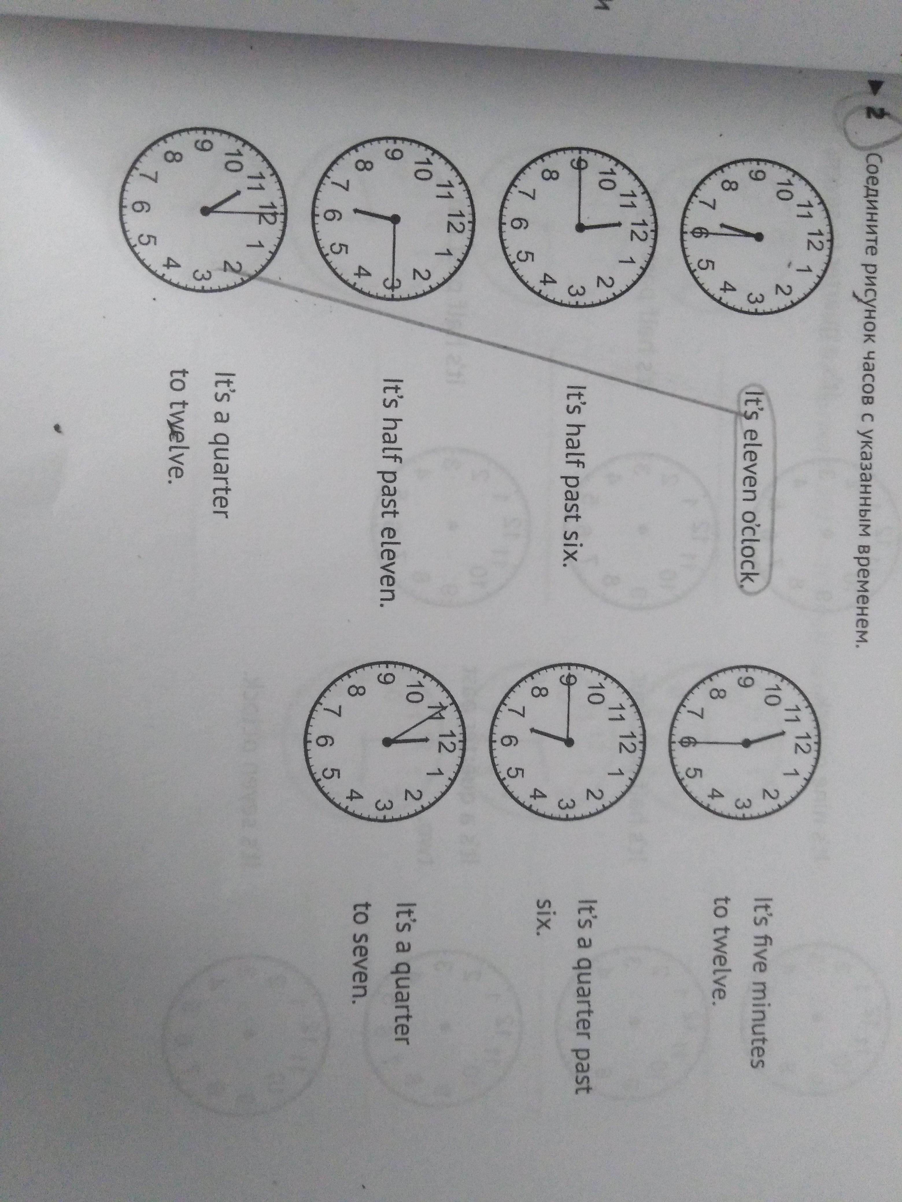 2 часы(11:45)- It's a quarter to twelve.