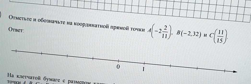 -2 2/11 отмечаем между -2 и -3, приблизительно деля это расстояние на 11 частей и, отмеряем 2 части от -2 влево, отмечает эту точку А.