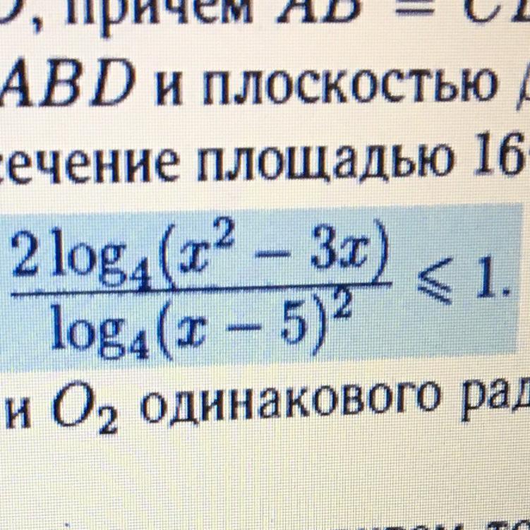 \dfrac{2\, log_4(x^2-3x)}{log_4(x-5)^2}\leq 1\ \ \ ,\ \ \ ODZ:\ \left\{\begin{array}{l}x^2-3x>0\\(x-5)^2>0\\log+4(x-5)^2\ne 0\end{array}\right\\\\\\\left\{\begin{array}{l}x(x-3)>0\\(x-5)^2\ne 0\\(x-5)^2\ne 1\end{array}\right\ \ \left\{\begin{array}{l}x(x-3)>0\\(x-5)^2\ne 0\\(x-5)^2\ne 1\end{array}\right\ \ \left\{\begin{array}{l}x\in (-\infty ;0)\cup (3\, ;+\infty )\\x\ne 5\\x\ne 4\ ,\ x\ne 6\end{array}\right