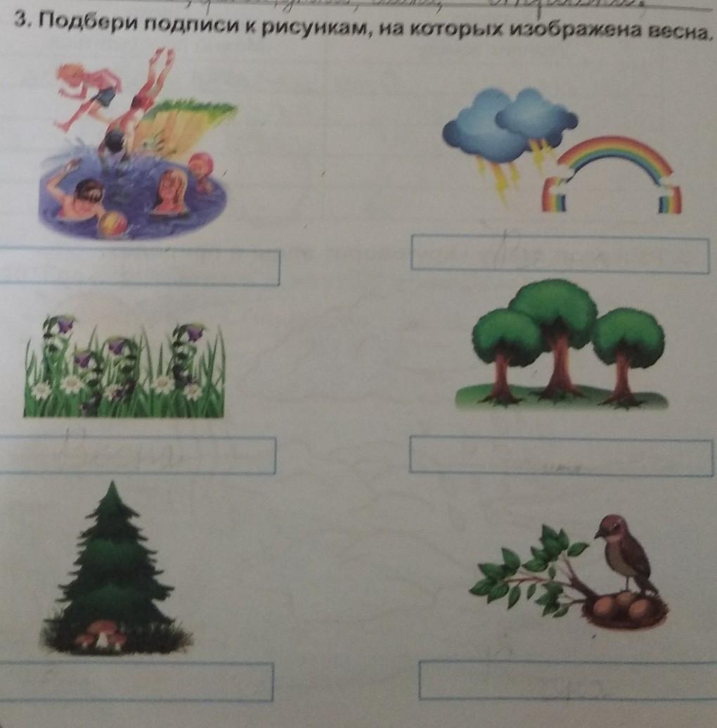 3. Подбери подписи к рисункам, на которых изображена весна. Задание 1 класса))) По ОНМ