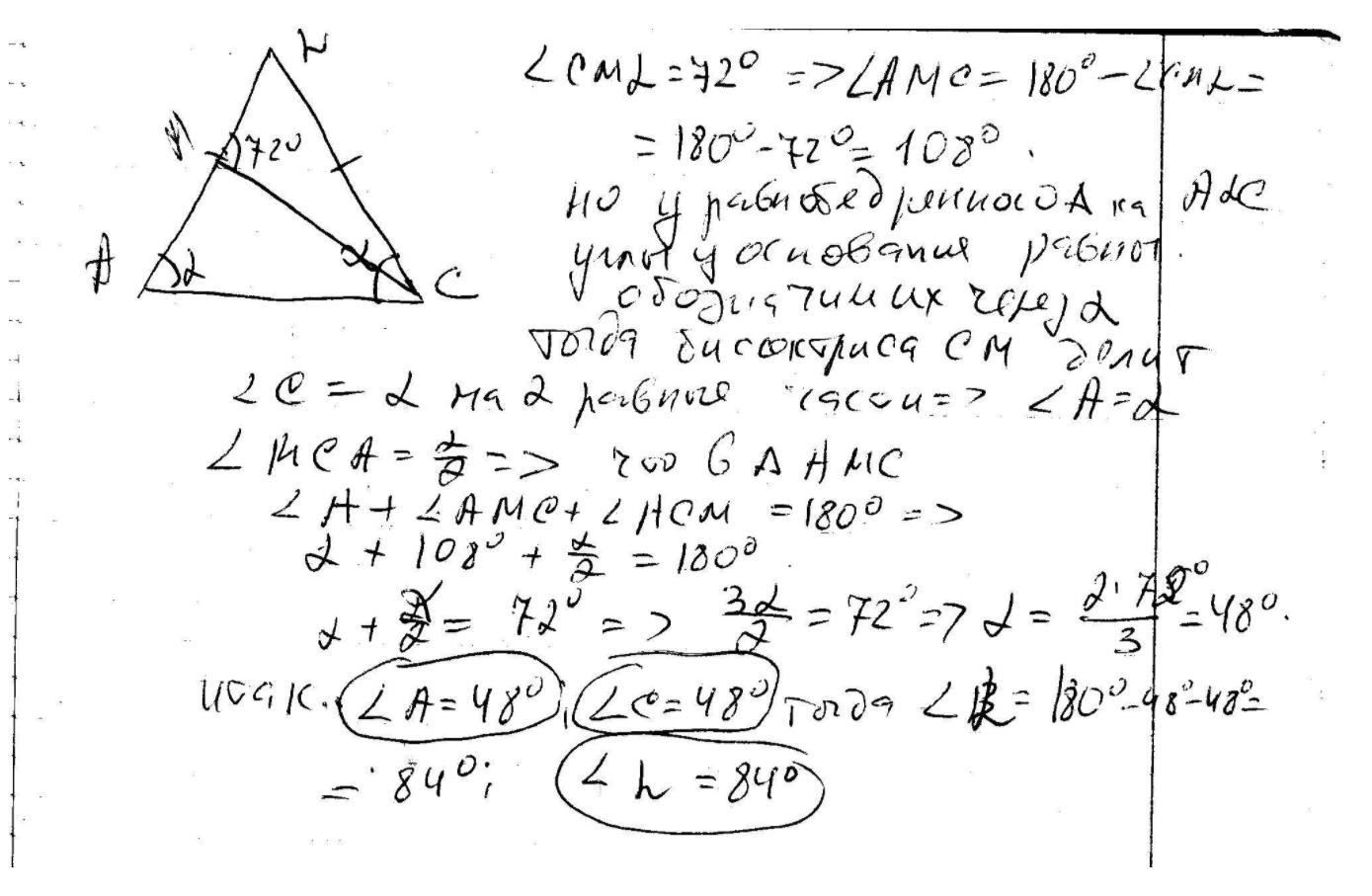 ∡ CMR = 72°. Определи величины углов данного треугольника (если это необходимо, промежуточные вычисления и ответ округли до тысячных).