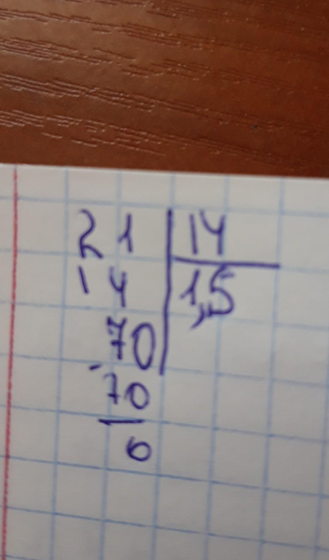 Думаю понятно, когда к 7 добавляем 0 то ставим запятую в ответ так как 14×5 будет 70 то выходит 1,5
