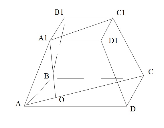 Дана правильная четырехугольная усеченная пирамида ABCDA1B1C1D1. ABCD и A1B1C1D1 - квадраты, со сторонами 5 и 2 см соответственно.