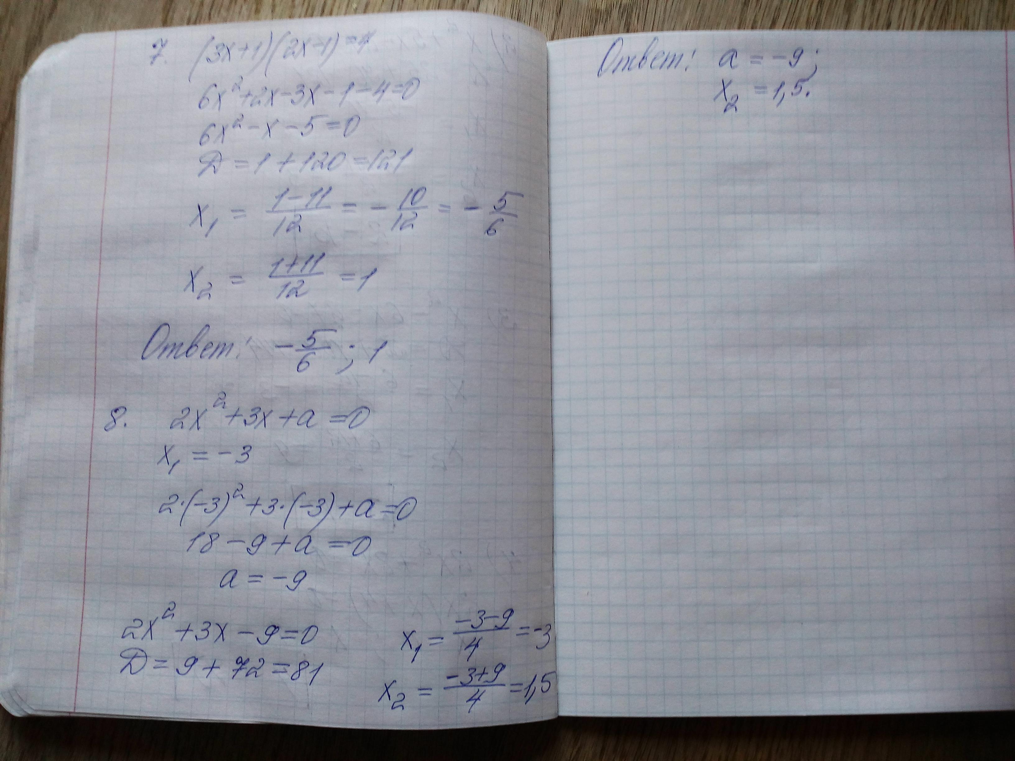 7. Развяжите уровнение: (3х+1)(2х-1) = 4