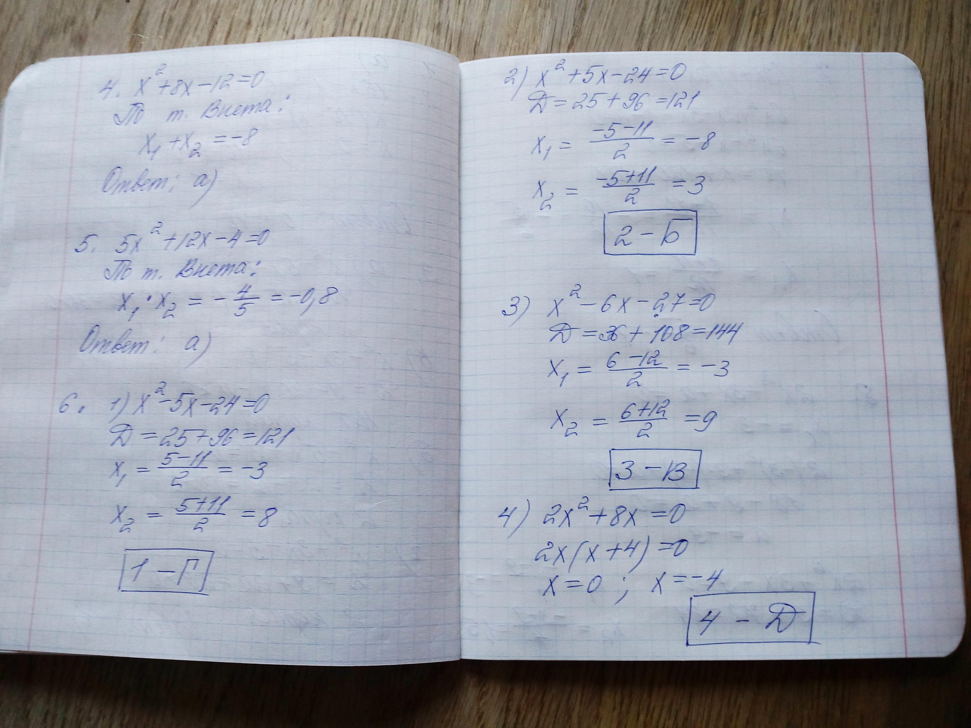 2) х2 +5х – 24 = 0 Б) 3; -8