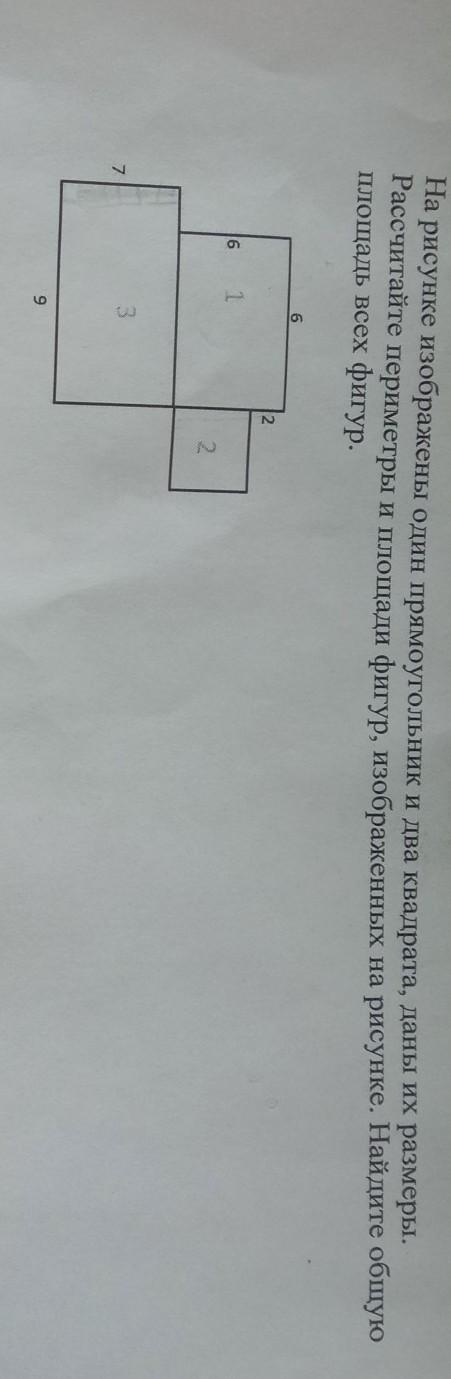 Общая площадь = S1 + S2 +S3 = 36 + 16 + 63 = 115