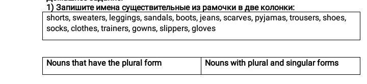 1 - shorts, leggins, jeans, pyjamas, trousers, clothes 2 все остальное