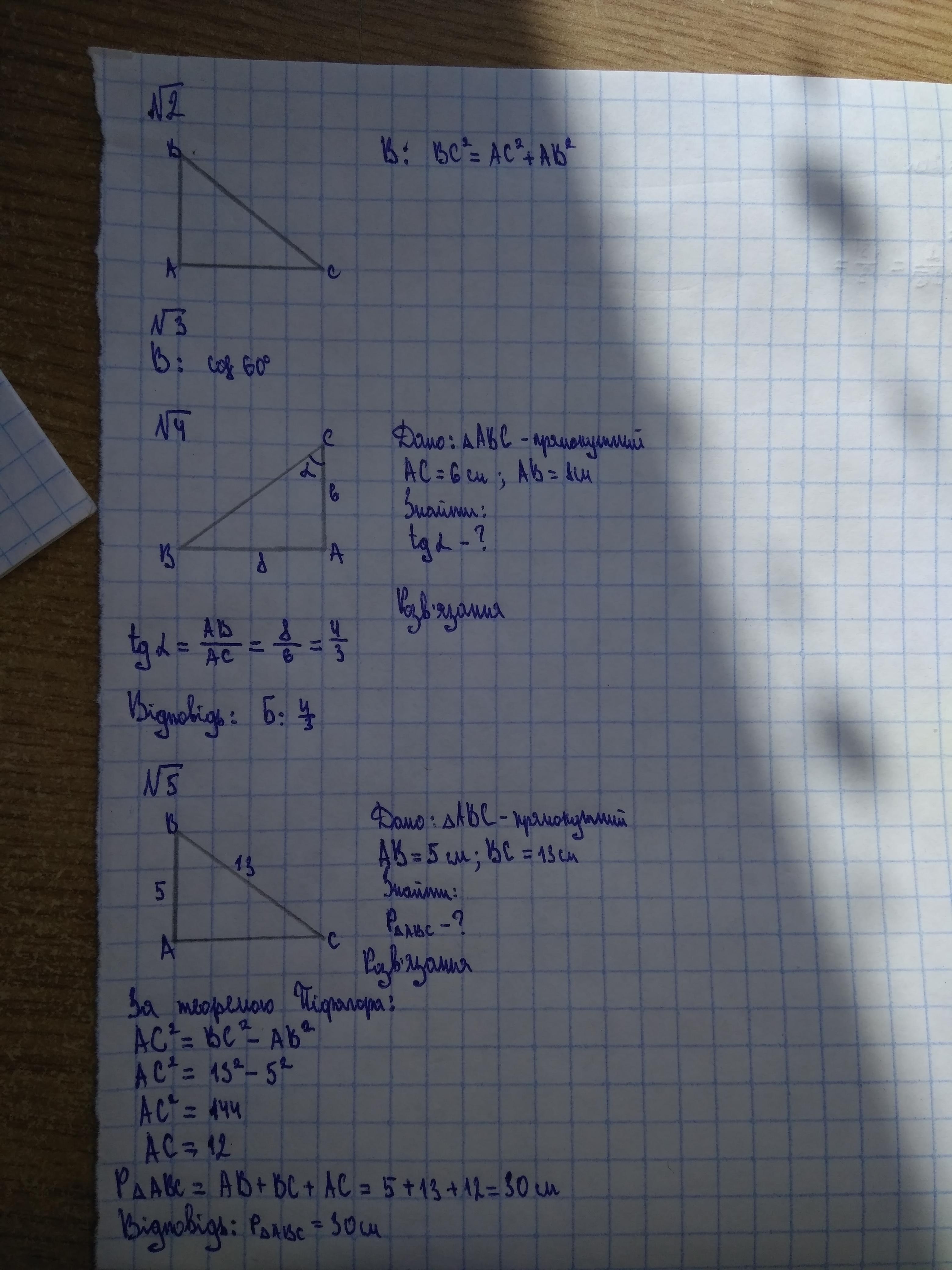 4) шукаєм інший Катет гіпотенуза BC Катет AC