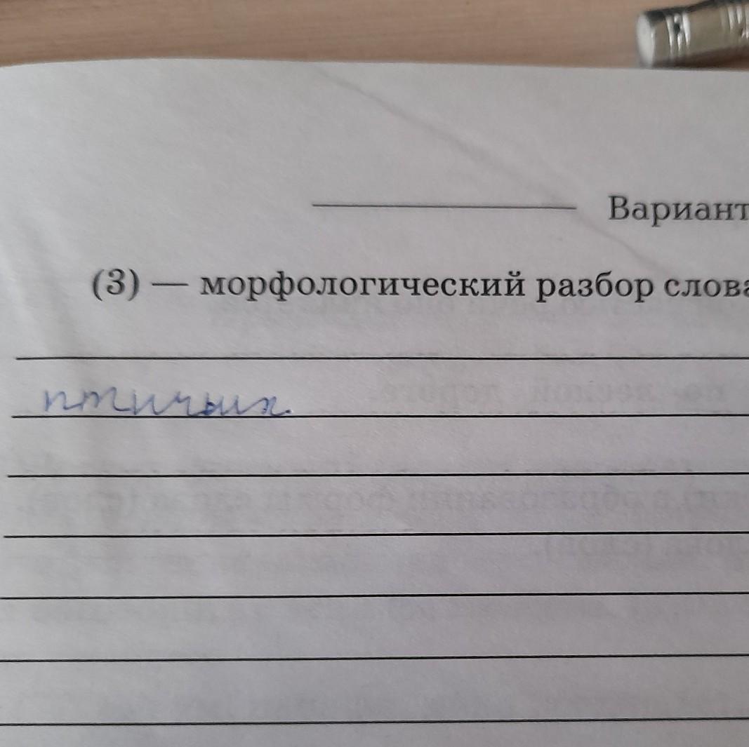 2.морфолог.признаки : Начальная форма: птичий (именительный падеж единственного числа мужского рода);