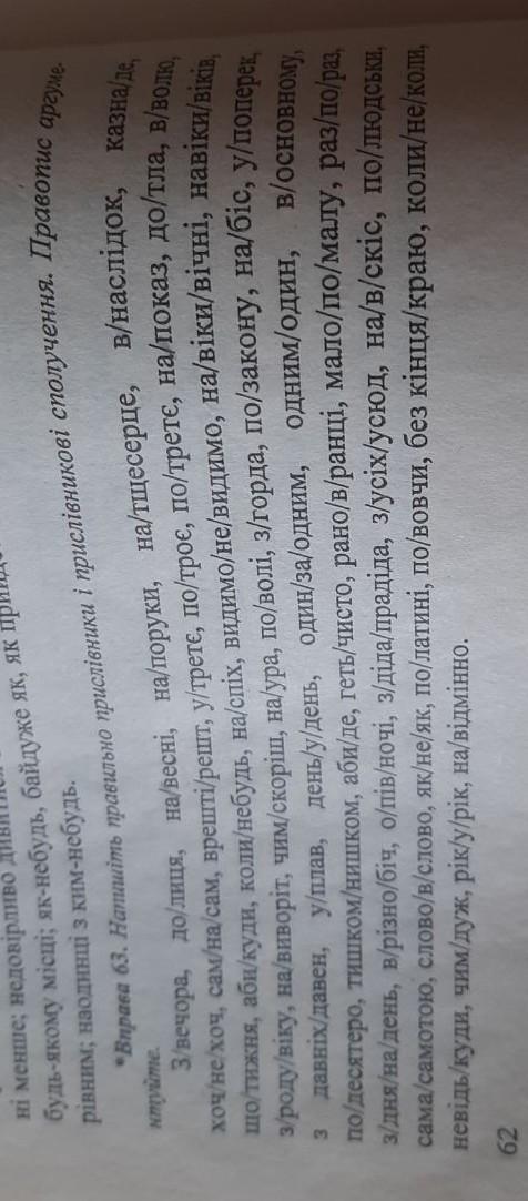абикуди, коли-небудь, наспіх, видимо-невидимо, на віки вічні, навіки-віків, зроду-віку, навиворіт, чимскоріш, на ура, поволі, згорда, по закону, на біс, упоперек, з давніх-давен, уплав, день у день, один за одним, одним-один, в основному, по десятеро, тишком-нишком, абиде, геть-чисто, рано-вранці, мало-помалу, раз по раз, з дня на день, врізнобіч, опівночі, з діда-прадіда, з усіх усюд, навскіс, по-людськи, сама самотою, слово в слово, як-не-як, по-латині, по-вовчи, без кінця-краю, коли-не-коли, невідь-куди, чимдуж, рік у рік, навідмінно