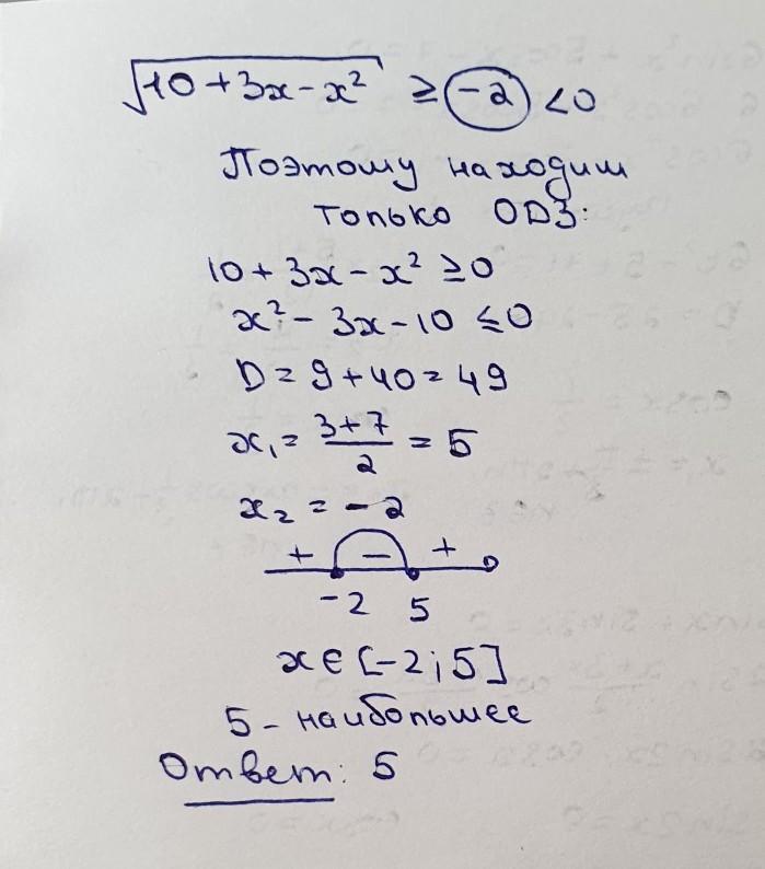 Решите неравенство (всё под корнем )√10+3x-x² ≥ -2 . В ответ необходимо написать наибольшее целое решение