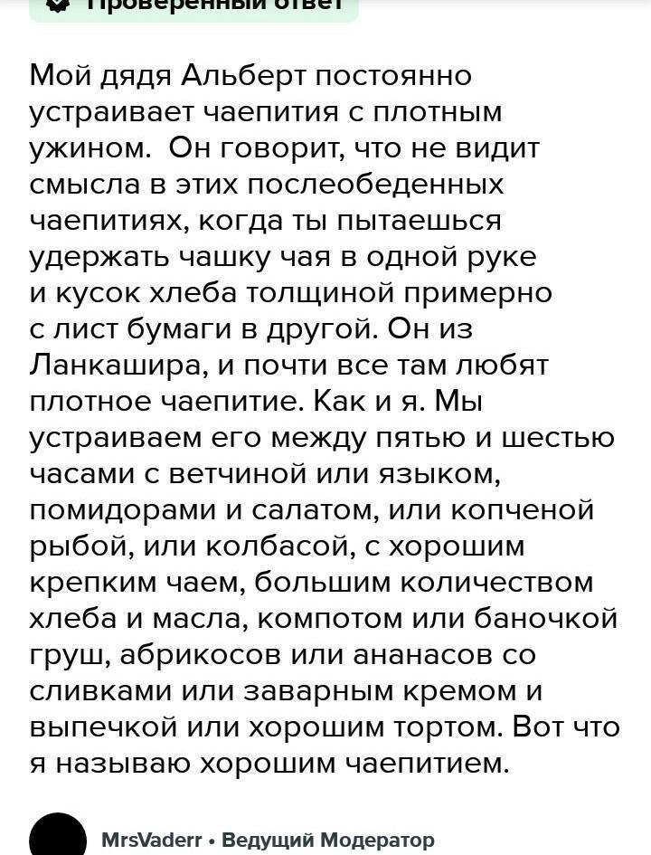 Какой обед любит дядя? Откуда дядя?Во сколько начинается чаепитие?