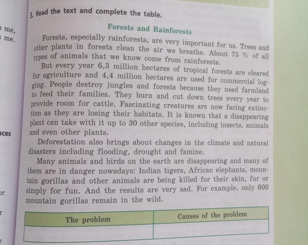 The problem - 1. People destoy jungles and forests ,2. they burn and cut down trees