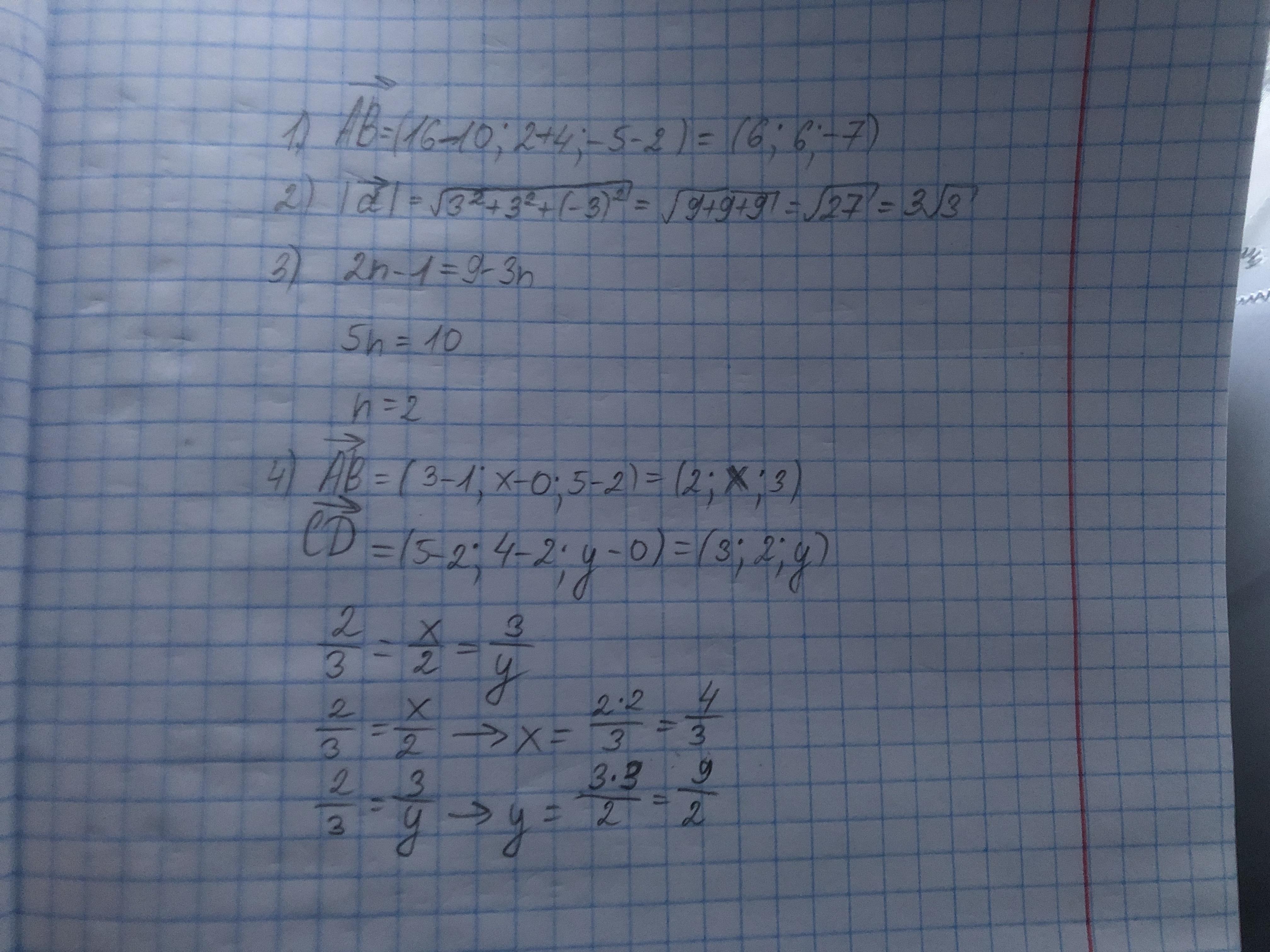 4.Дано точки А ( 1 ; 0 ; 2 ) , В (3 ; х ; 5 ) , С (2 ; 2; 0 ) і Д ( 5 ; 4 ; у ). При яких значеннях змінних вектори АВ⃑⃑⃑⃑⃑ і СД⃑⃑⃑⃑⃑ будуть колінеарними?