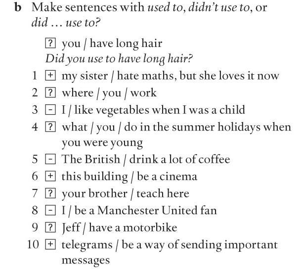 Make sentences with used to, didnt use to, or did...use to?