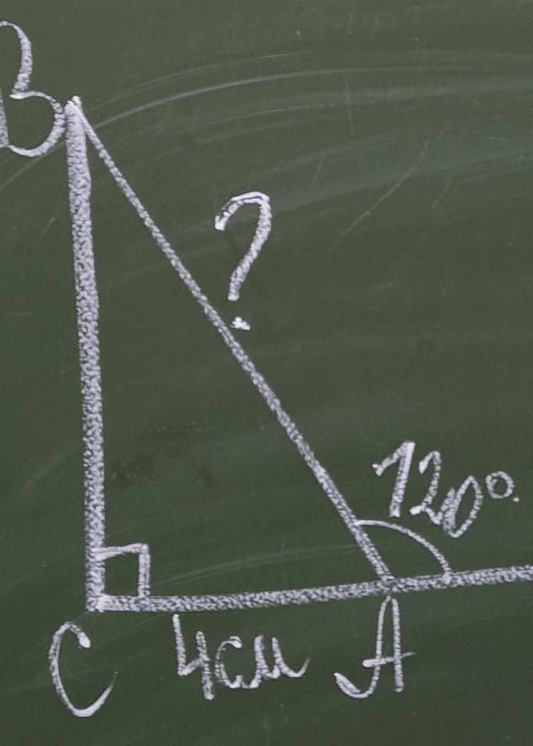 Cos 60° = 4/BA; BA = 4/cos60°=4/(1/2)=8