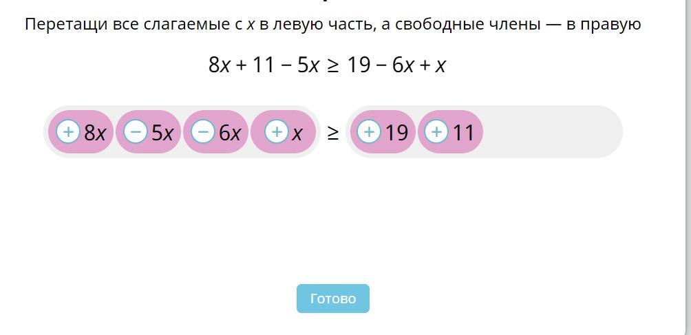 8x + 11 − 5x ≥ 19 − 6x + x