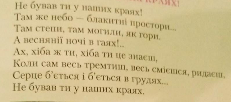 Не бував ти у наших краях. потрібно написати що хоче сказати нам ліричний герой(автор) вірша пожалуйста помогите дам 10 балов