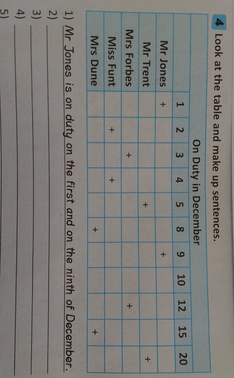 3. Mrs Forbes is on duty on the third and on the twelfth of December.