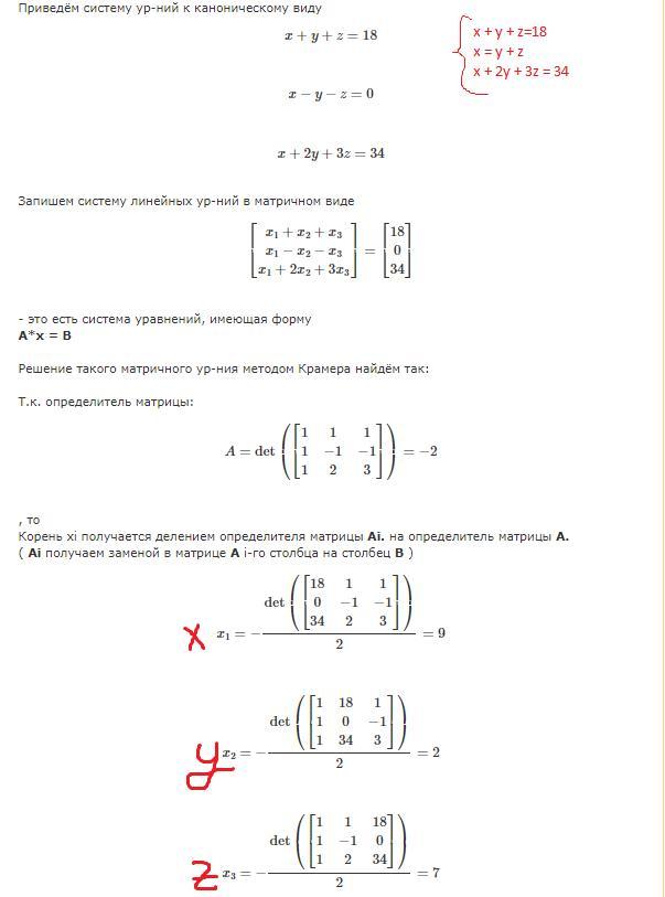 Тройную систему уравнений будем решать методом Крамера с помощью онлайн калькулятора.