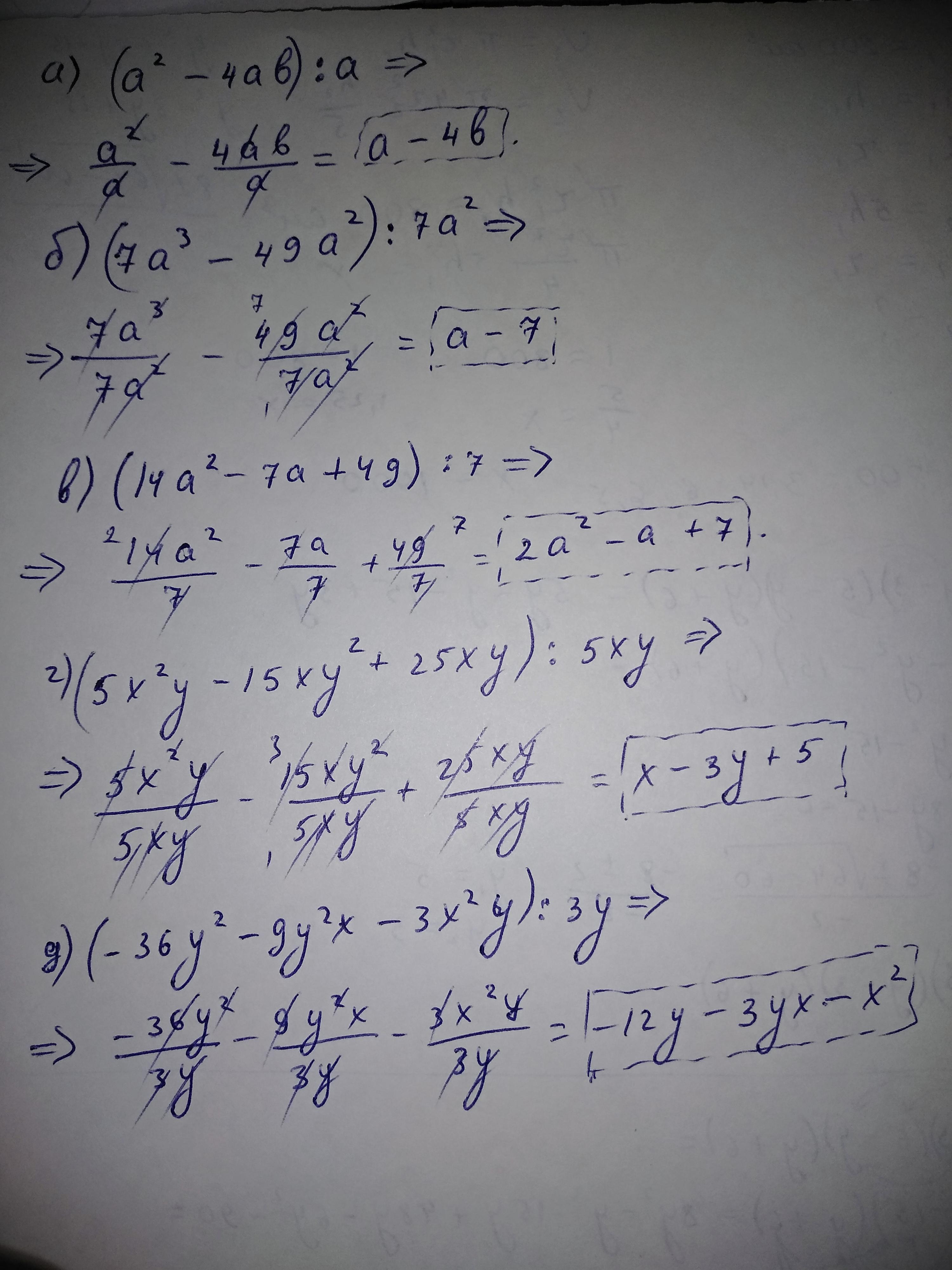 Каждый член делим по отдельности. Ответы выделены.