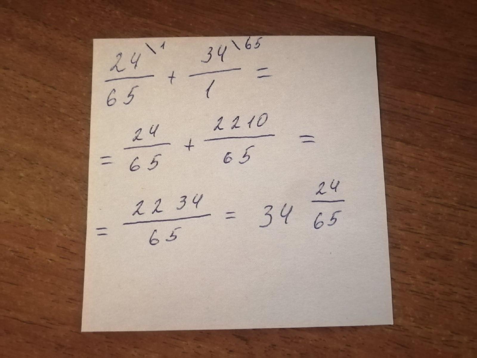 Нужно привести к общему знаменателю (для этого нужно умножить первую дробь на 1, а вторую на 65)