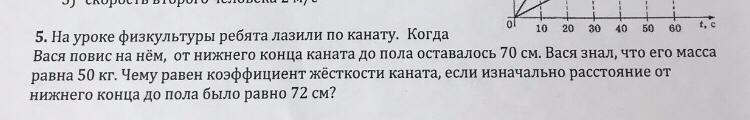 Объяснение:вначале расстояние до пола было 72 см, а стало 70 следовательно канат удлинился на 2 см.