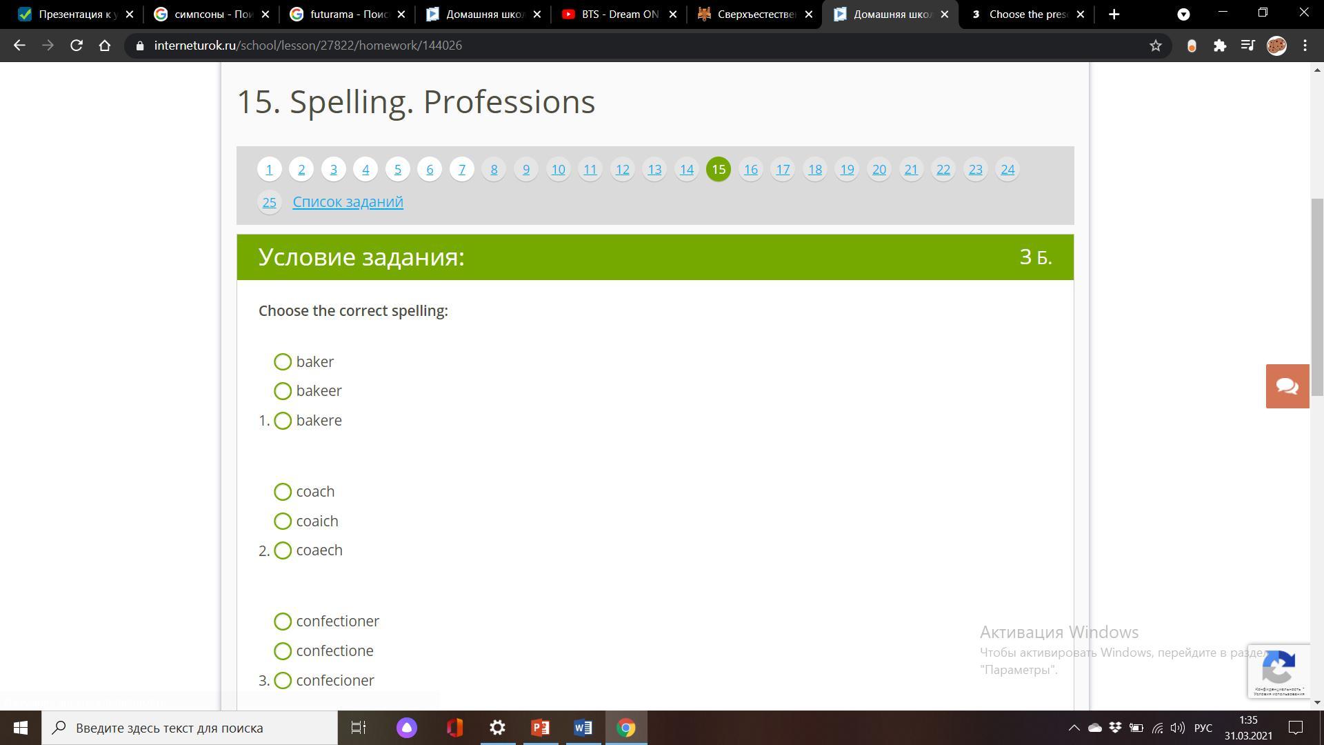 15. 1) baker, 2) coach, 3) confectioner