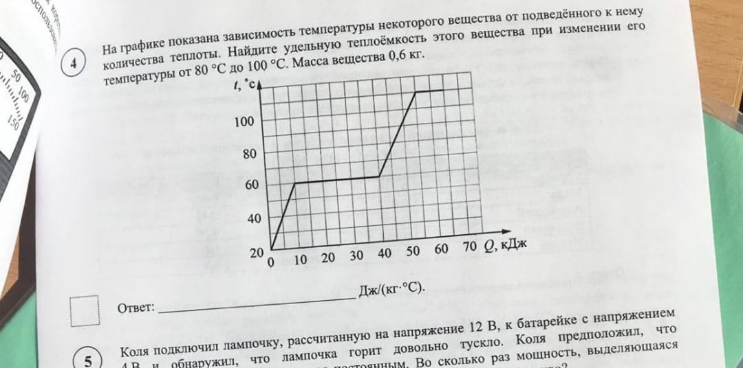 количества теплоты. Найдите удельную теплоёмкость этого вещества при изменении его
