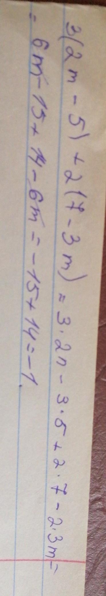 3(2m-5)+2(7-3m)=6m-15+14-6m=-1