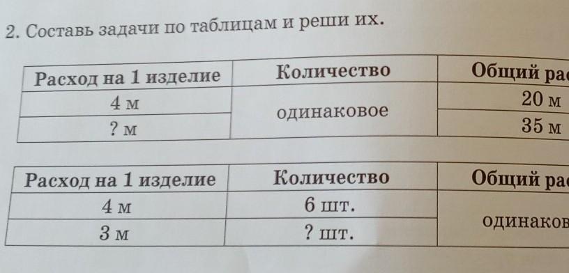 розход на 1 изделье 4 м количество одинаковое но у нас ёсть 2 изделье оно неизвесное а размер 1 изделье состовляет 20 м а 2 изделье составляет 35 м узнай сколько потребывалась на второе изделье?