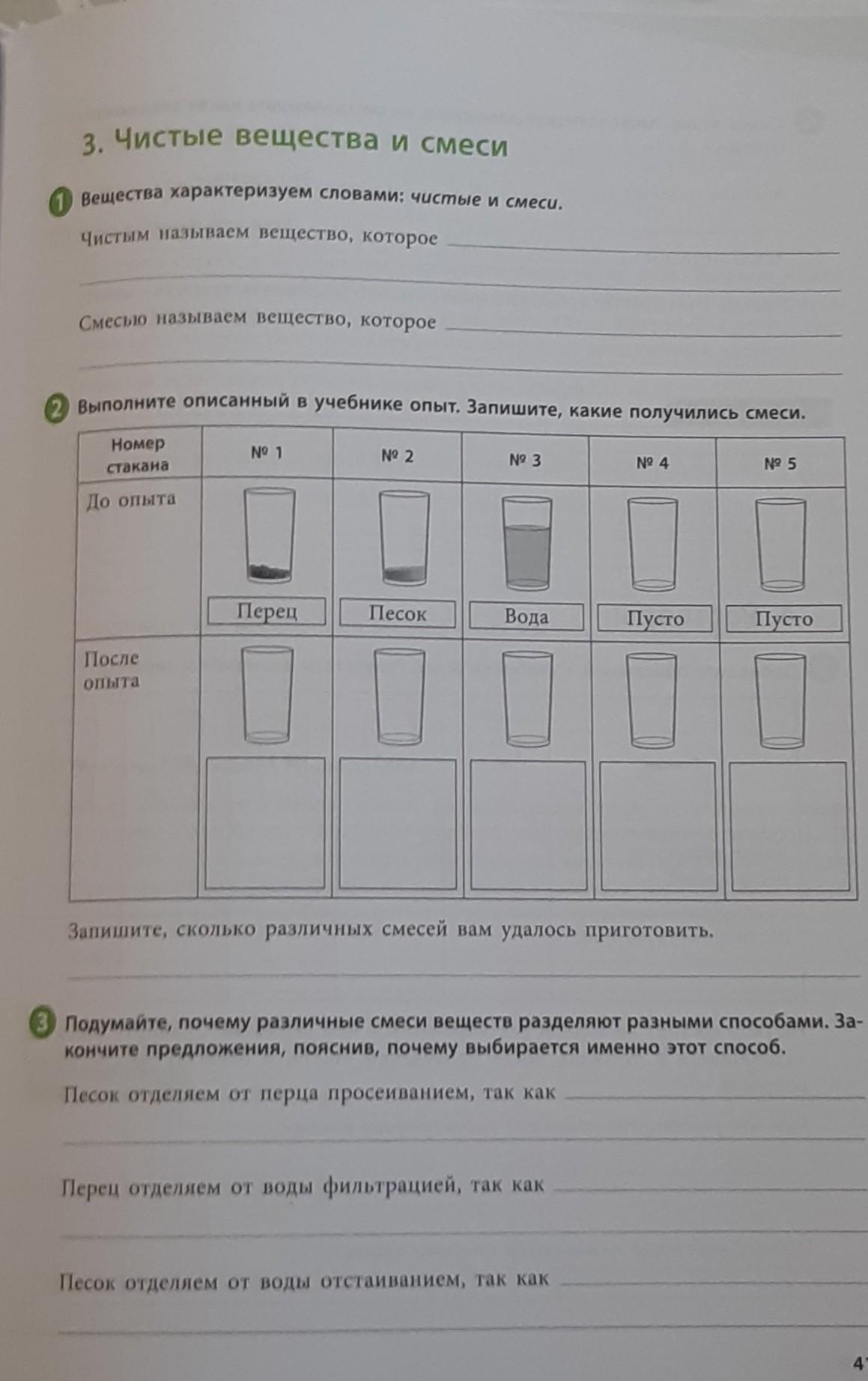 2. 3 смеси : 1 смесь песка и перца .2 смесь перца и воды и 3 смесь песка от воды