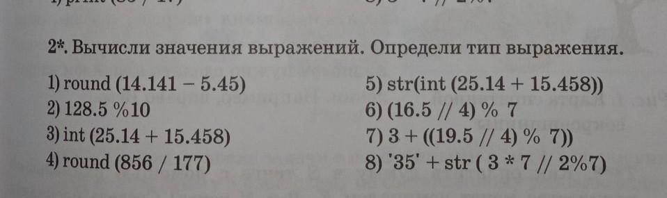 7) 19.5 / 4 = 4,875 -> (// - целочисленное деление) 19.5 // 4 = 4;