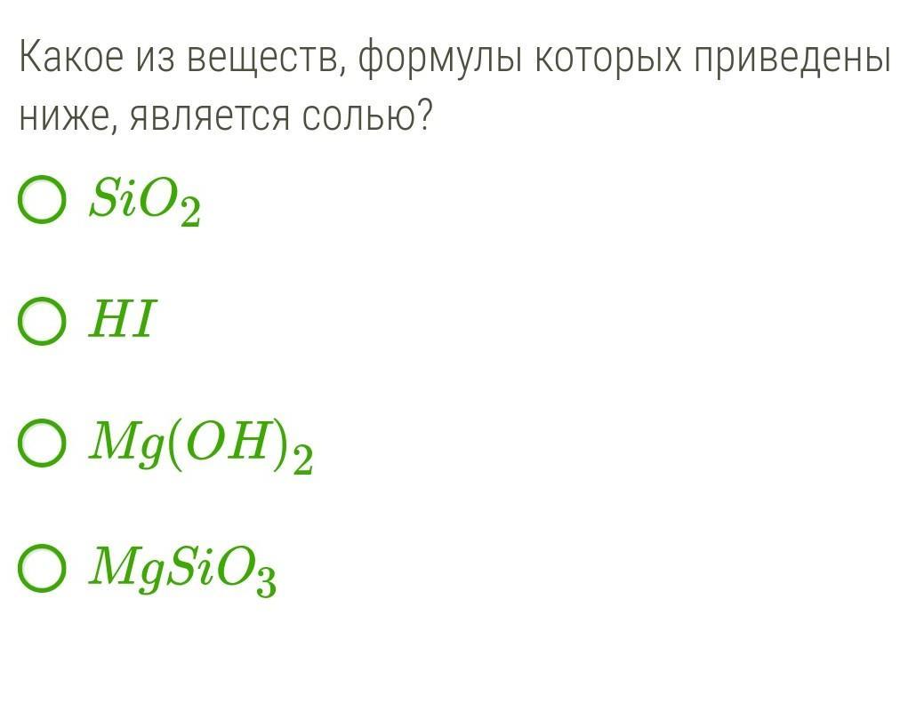 Какое из веществ, формулы которых приведены ниже, является солью?