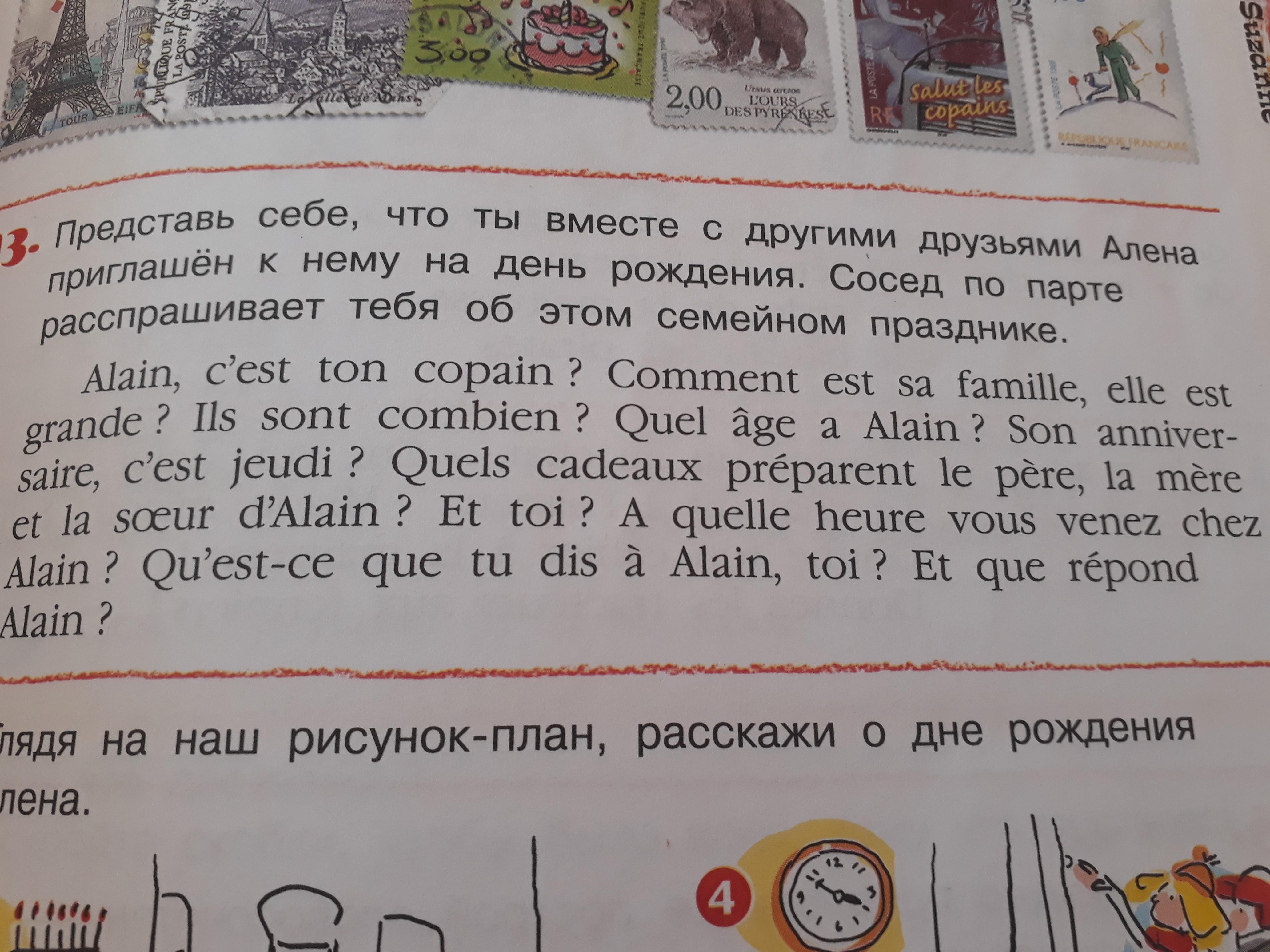 Представь себе,то ты вместе с другими друзьями Алена приглашён к нему на день рождения. Сосед по парте расспрашивать тебя об этом семейном празднике. Французский язык 5 класс Синяя птица. СРОЧНО НУЖНО!!!!