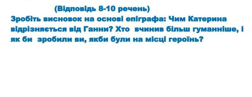 Катерина- особистість яскраво окресленими індивідуальними рисами характеру. Вона не така сильна натура, як Ганна. Для неї в жиі головним було лише кохання та честь, віра в кохану людину , заради цього вона терпіла всі свої біди й поневіряння. Втративши сенс свого буття, вона не бачить іншого шляху, навіть син не стримує її від самогубства.Ганна зосереджується на любові до дитини. Вона самозрікасться в ім'я сина, любов до нього перемагає все інше. Їй властивий "тихий героїзм". Наймичка натура цільна і, у певному розумінні, ідеальна індивідуалізована. Вона безвинна жертва обставин,спокутує все життя свій гріх.В обох творах головна увага зосереджена на переживаннях дівчини-покритки, жінки-матері. У поемі "Наймичка" Шевченко ніби знову повторює історію Катерини, трагедію її нещасливого кохання, але разом з тим розробляє її. Образи Катерини та Ганни мають багато спільного та відмінного.