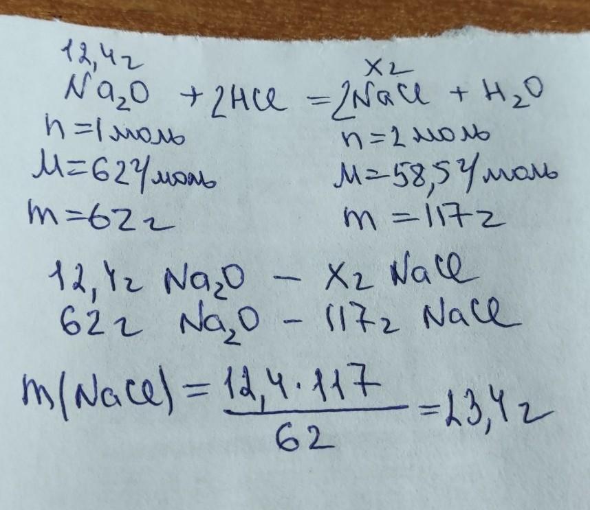 обчислити масу солі яка утворилася в результаті взаємодії натрій оксиду масою 12,4 г з хлоридною кислотою