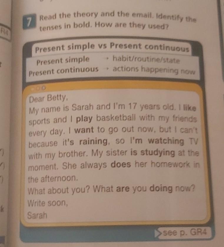 Present Continuous:'s raining,'m watching,is studying,are you doing