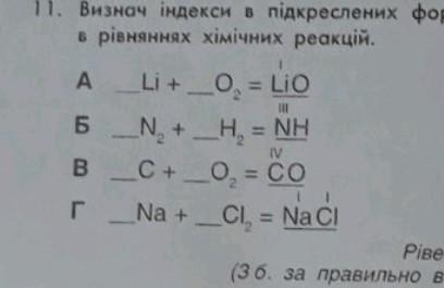 Визнач індекси в підкреслених формулах. Постав де потрібно, коефіцієнти в рівняннях хімічних реакцій.