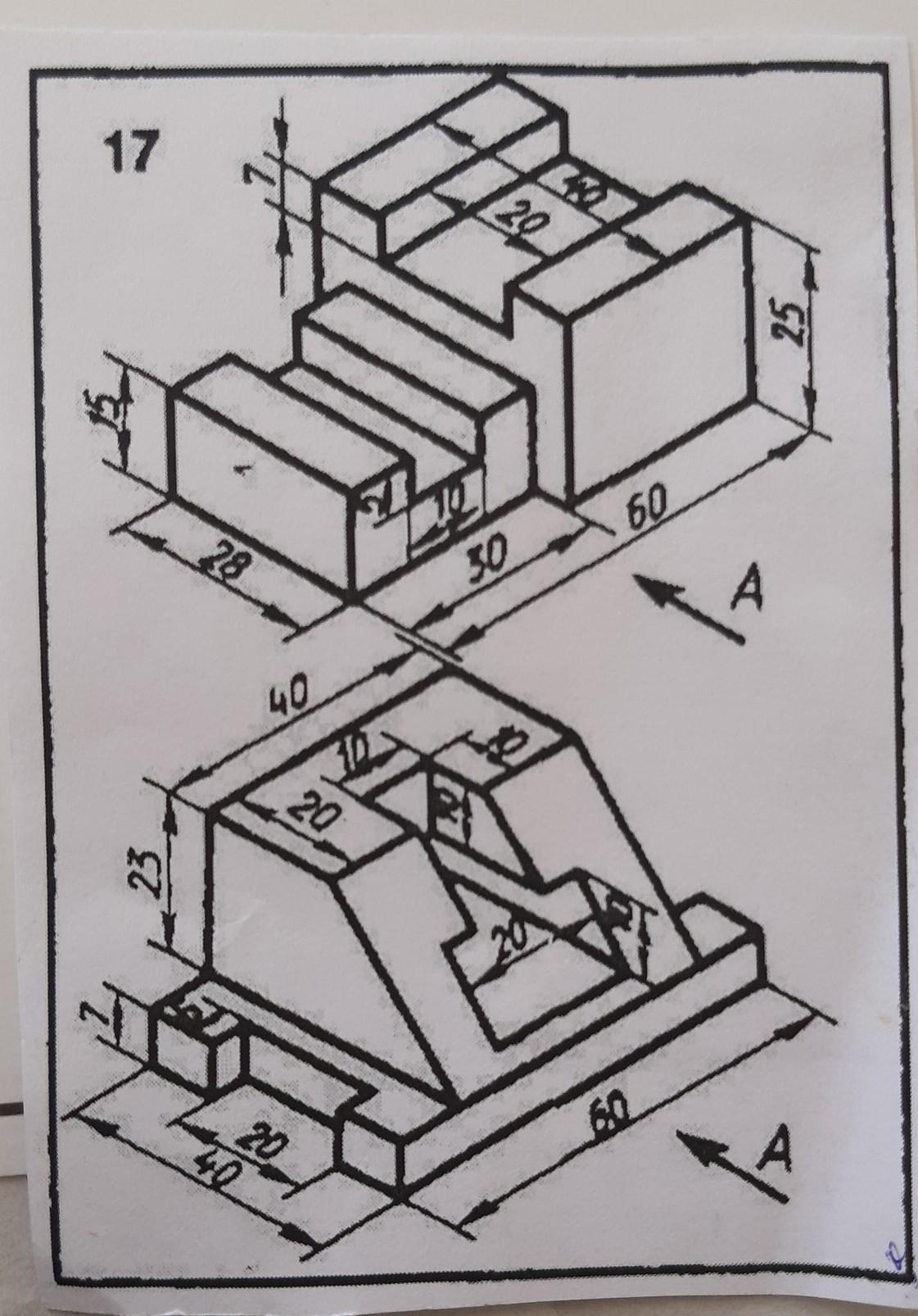 Помогите сделать две модели в разрезе. Верхняя деталь вертикальный разрез, нижняя деталь горизонтальный разрез. Заранее спасибо.