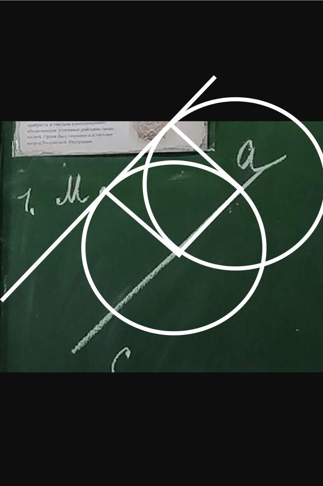 Берём циркуль отмеряем радиус от прямой до точки М и строим окружность,